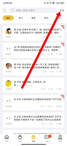 在给力心理咨询平台设有用户社区,很多用户其实也有不少问题想和其他用户一起探讨,不过却不清楚该如何发布帖子,接下来小编就为大家介绍发帖子的具体步骤。