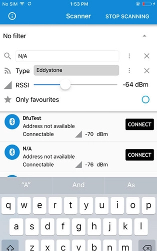 点击界面右上角的“SCAN”文字后,该文字会切换为“STOP SCANNING”,此时点击它即可终止扫描操作。在扫描停止前已检测到的设备,依旧会保留在列表当中。
