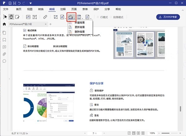在程序里打开PDF文件后,点击“编辑”选项,接着选择“背景”,然后在弹出的下拉菜单中挑选你想要执行的操作即可。