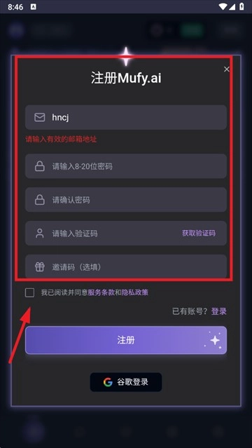 输入邮箱和密码点击登录,还可以使用谷歌账号登录