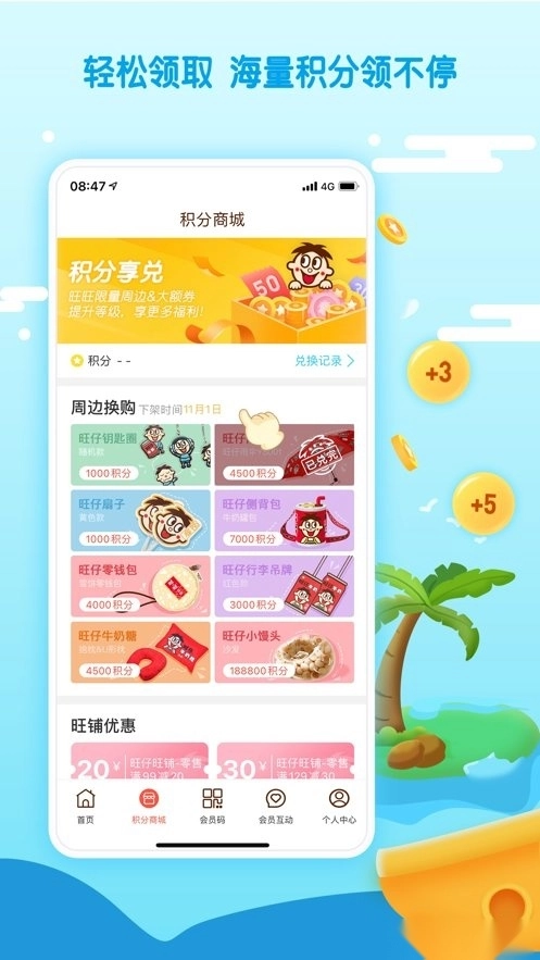 这里是旺旺粉丝专属的活动集合地,粉丝们能在此买到超划算的旺旺旗下产品,还可以查找周边线下商城是否有需要的旺仔系列商品,另外积分也能用来兑换或购买商品。