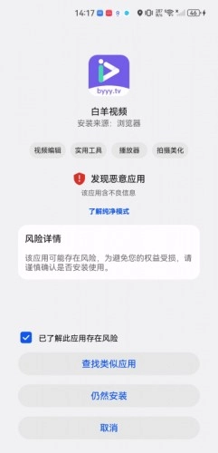 系统检测到恶意应用,这有可能是误判,建议点击“了解风险”查看详情。