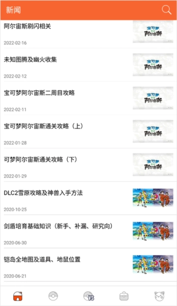 打开pokedex软件,刚进入就能看到宝可梦相关的游戏文章和攻略。