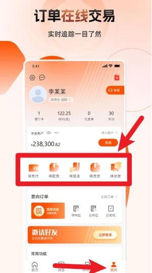 进入个人页面后,你可以查看所有订单的状态,像待支付、待配货、待发货和待收货这些都能看到,这样就能方便地实时追踪交易的整个流程了。