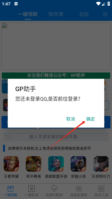 登录后进入对应的游戏专区,点击“一键领取”按钮就能获取游戏道具。