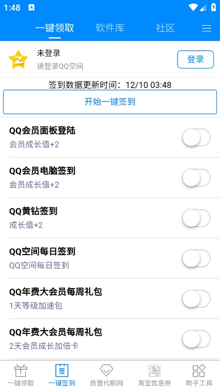在签到中心,您能够一键批量完成QQ会员、年费福利等项目的签到。