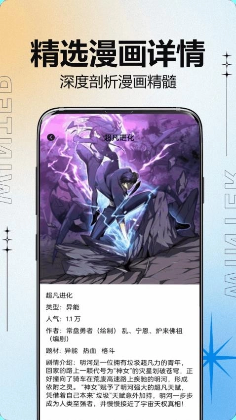 挑选风格,沉浸阅读:按照个人喜好选定漫画风格,进入简洁界面,畅享惬意、顺畅的阅读感受。
