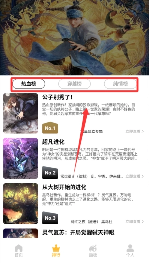 选择排行第一的动漫进入阅读。