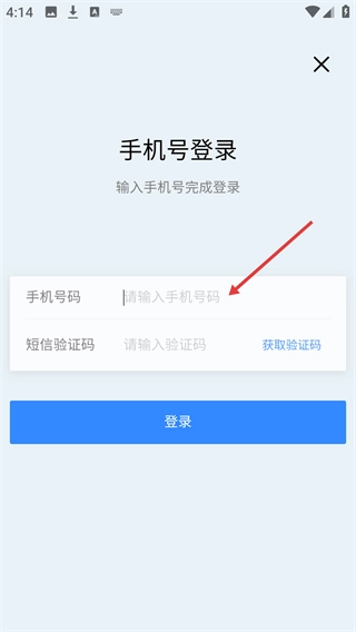 进入【手机号登录】页面时,要先在【手机号码】栏填写个人对应的手机号码,以便为后续的验证环节做好准备。
