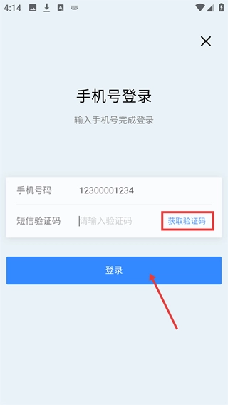 在【手机号登录】页面填写完手机号后,点击【获取验证码】,输入验证码后就能点击【登录】按钮。