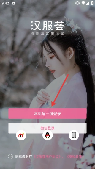 在汉服荟的登录页面,点击【本机号一键登录】选项,就能快速完成账号登录。