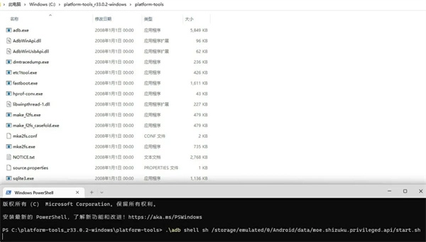 - 输入指令:`.adb shell sh /storage/emulated/0/Android/data/moe.shizuku.privileged.api/start.sh`