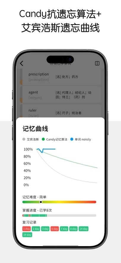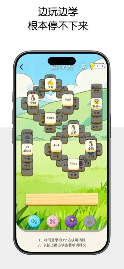依据艾宾浩斯抗遗忘曲线制定单词学习计划,利用碎片时间轻松背单词,不会累积单词学习任务,再搭配专属的单词消消乐游戏,让每个单词都能带来乐趣,而非学习压力。