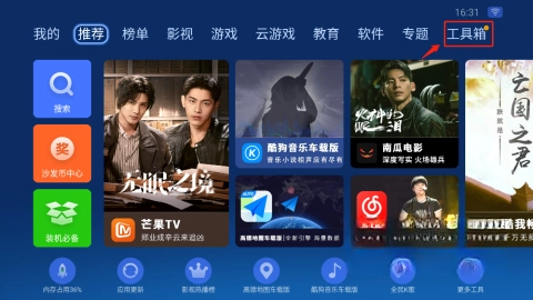 进入沙发管家,选择“工具箱”选项。