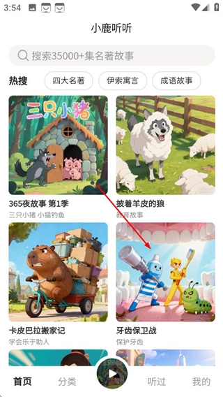 在小鹿听听的首页找到“牙齿保卫战”并点击,就能进入对应的故事详情页面啦。