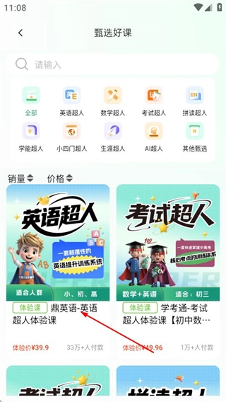 在鼎校甄选的首页,点击“甄选好课”选项,即可进入课程列表页面。