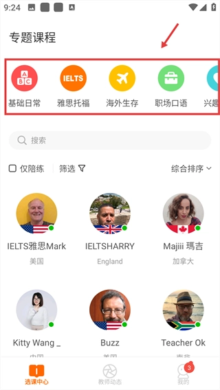 你可以在【选课中心】的专题板块里,挑选好想要的课程分类,然后就能进入对应的课程列表页面啦。
