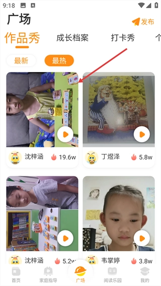 在【作品秀】页面点击【最热】标签,即可切换到热门作品列表。