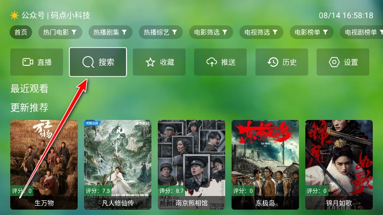 打开天威TV后,首页对各类影片进行了分类整理,用户也能借助搜索功能查找自己想看的剧集。
