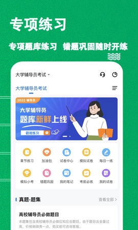 “辅导员练题狗”是一款专为辅导员考试备考设计的实用题库软件,核心目标是助力考生提升备考效率与综合分析能力。软件精心收录了近年高校辅导员考试的历年真题,让用户能深度接触真题,从而更精准地把握考试内容与核心考点。此外,它还配备了章节练习、预测试卷等丰富功能,全面覆盖考试易考知识点,便于用户在复习时针对性查漏补缺,切实掌握考试的重点与难点。