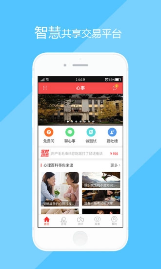 心事是一款能让用户自由倾诉心事的实用软件,用户不仅可以在这里诉说心中所有烦恼,软件还提供有趣的心理测评功能供用户体验,并且绝对保障用户隐私,用户在这里完全匿名,没人知道你是谁,使用起来安全可靠,感兴趣的用户快来本站免费安装吧!