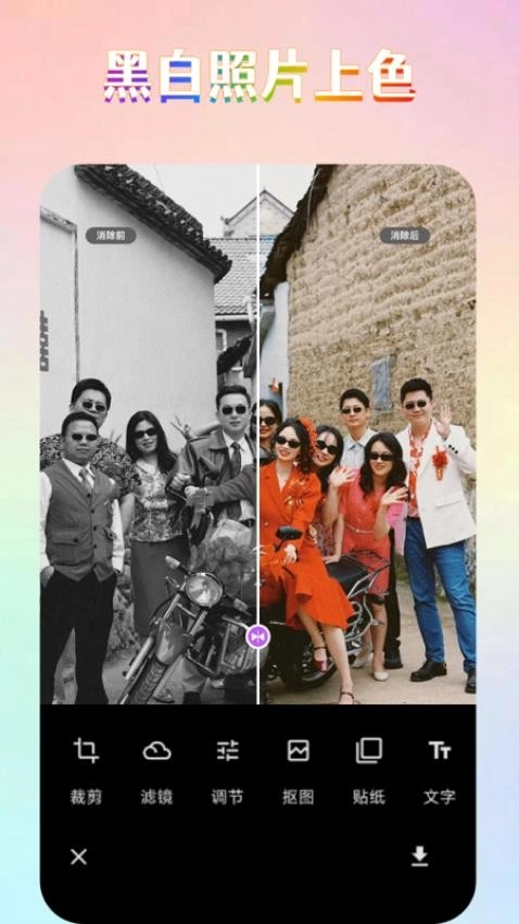 具备黑白照片上色功能,能帮助用户便捷地把黑白照片转换为彩色照片。