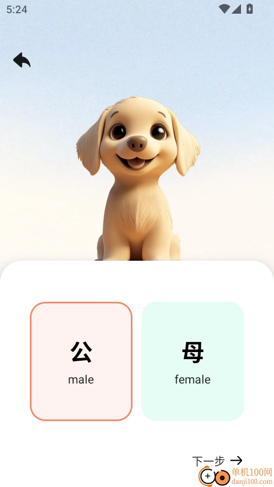 4. 在选择虚拟宠物的性别为“公”或者“母”后,点击“下一步”按钮