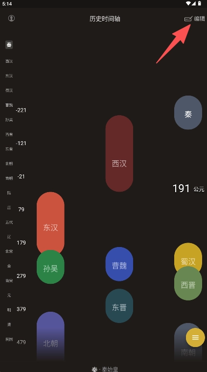 1、在时间轴主界面点击右上角的“编辑”按钮,即可进入编辑模式。