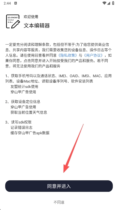 1、在本站安装文本编辑器打开,同意用户协议进入