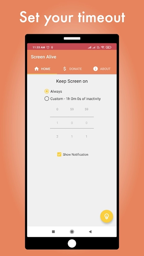 屏幕常亮助手,又名ScreenAlive,是一款专为安卓手机用户设计的亮屏工具。它的适用场景十分丰富,能帮助用户让手机屏幕持续保持点亮状态。用户可以根据自己的需求自由设置屏幕常亮的时间,这样就无需再担心手机会自动熄灭屏幕并锁定了。