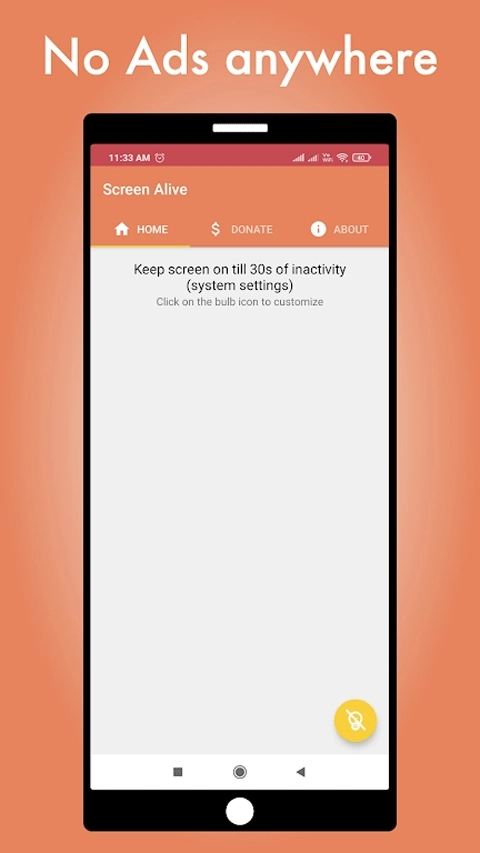 4、若要恢复“自动锁屏”功能,除了通过系统设置操作外,也可在本应用内点击右下角的灯泡图标按钮(点击后该图标会变为带有斜杠的灯泡样式),即可完成恢复。