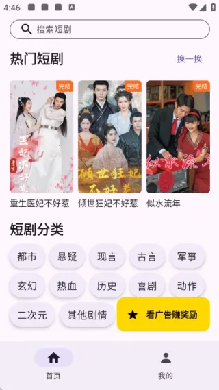 这款产品用起来特别顺手。打开首页就能看到热门短剧推荐和清晰的分类板块,想选什么剧都能自由挑选;搜索页面功能精准又高效,找剧速度很快;播放页面设计贴心,随时都能接着追剧。另外,登录微信账号还能一边看剧一边赚福利,各种奖励特别多。