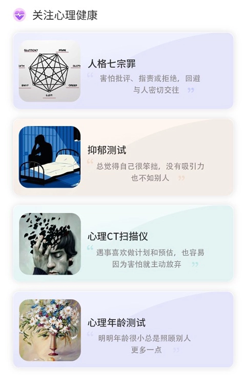 3. 持续更新:我们会定期补充新内容,涵盖新增的测试题目、深度解读文章以及最新的心理学研究成果,以此确保应用始终具备专业水准并紧跟领域前沿动态。