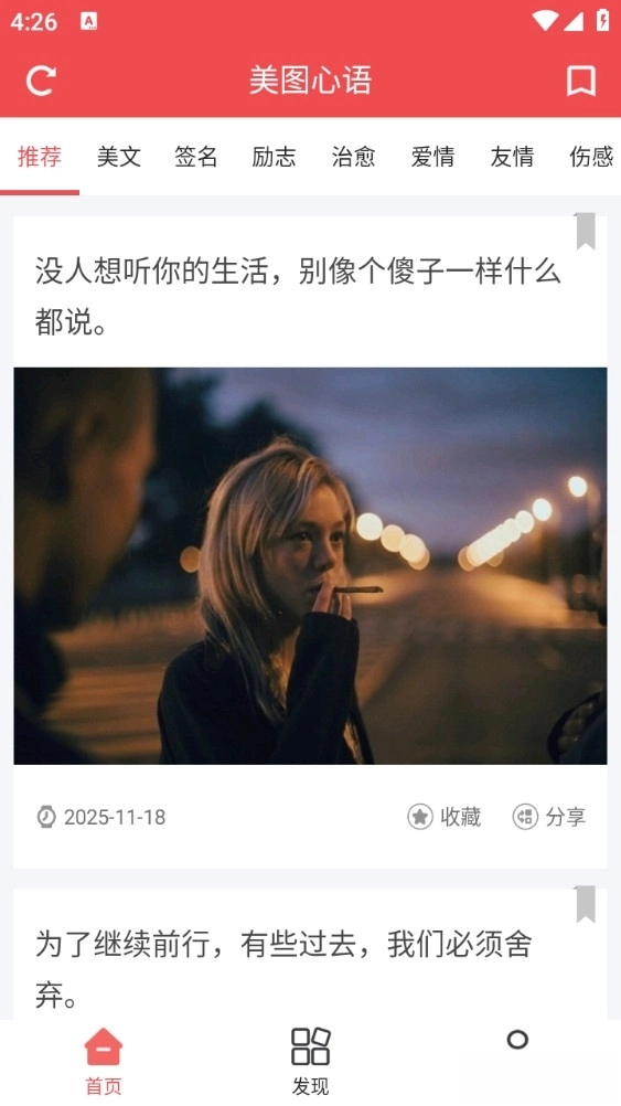 1.美图心语手机应用汇聚了最具优雅气质的文字与最显唯美意境的图片,崭新的一天从这里开启;