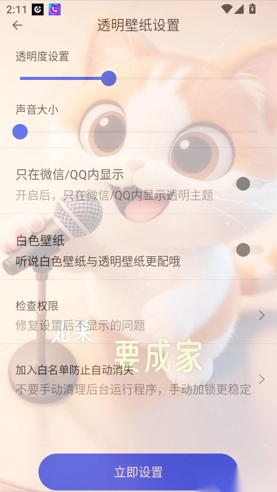 5.最后进入“透明壁纸设置”菜单界面,找到“透明度设置”选项,通过滑动对应的调节按钮就能调整透明度的大小了。