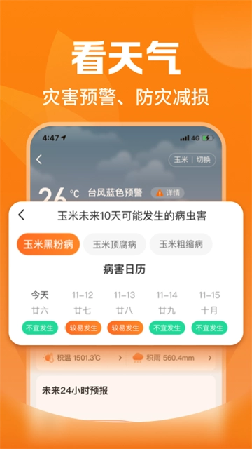 提供精准农业天气、灾害预警及防灾减损建议。