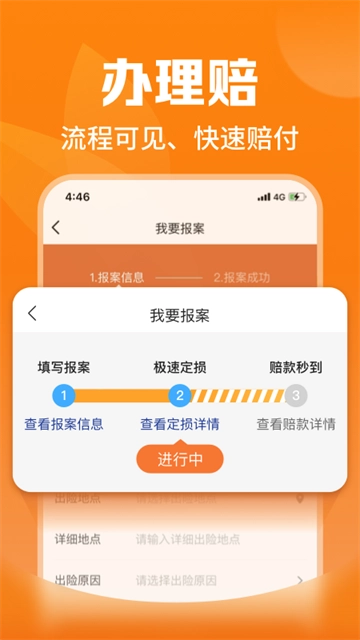 一键报案,快速拿到赔款,时时了解理赔进度。