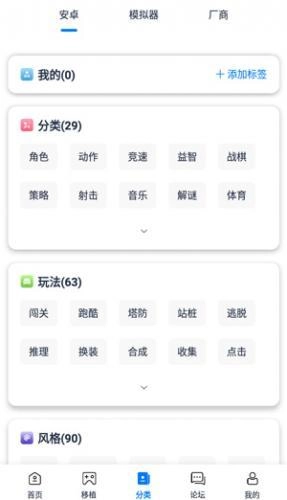 4、点开分类,有按分类、玩法、风格等类型分类的游戏,还有按模拟器、厂商来划分的,玩家可自由选择。