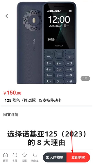 在通讯手机的商品列表页面,挑选好想要购买的商品后,点击进入该商品的详情页面。