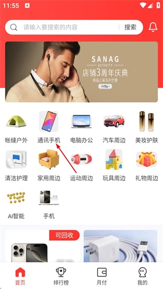 在海兔商城首页,找到并点击“通讯手机”分类,即可进入通讯手机商品列表页面。