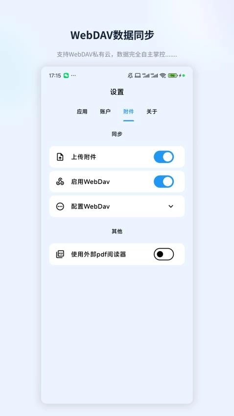 这款应用的数据同步功能十分强大,不仅支持一键上传附件并同步保存,还能根据用户需求进行自定义配置。