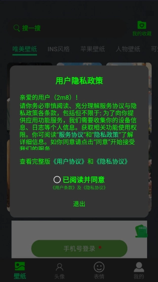 1、用户先在安装,查看相关用户隐私政策。