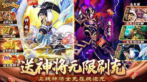 1、我的帝国送神将无限刷充版是一款三国题材的卡牌类型的游戏。