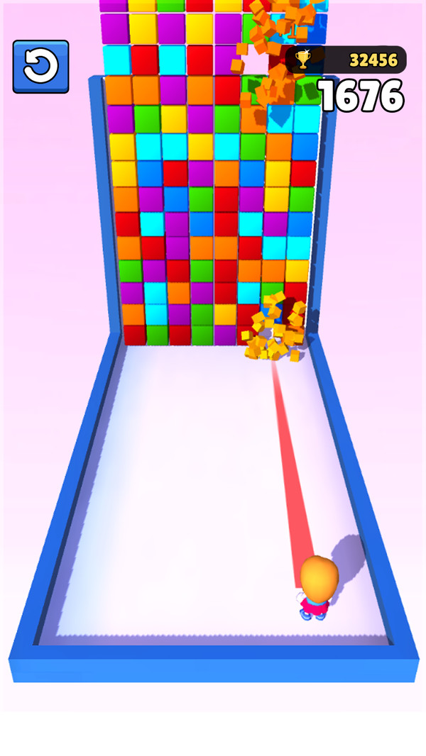 十分简单的射击消除玩法,通过方块的射击来将面前的物块进行消除,获得极佳的休闲体验。