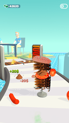 2、游戏玩法简单易上手,玩家只需要通过点击屏幕来操作摊主进行烧烤和跑酷,不仅轻松愉快,还能感受到挑战的乐趣。