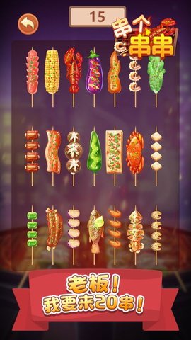 2、烤制烤串:玩家需要根据顾客的口味要求,选择合适的食材进行烤串制作,包括食材搭配和烤串烤制的时间掌控。