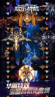 欢乐战机是一款经典的竖版飞行弹幕射击玩法,登陆就有免费的超强战机领取,挑战各种BOSS,回味曾经街机时代带来的爽快打击,超强火力,超绚丽画面,你值得拥有。游戏中玩家可以选择不同的飞机,消灭不断出现的方块,飞机还可以升级强化。游戏展现出超流畅的手感、超华丽的技能、超爽快的升级、最新潮的战机合体。