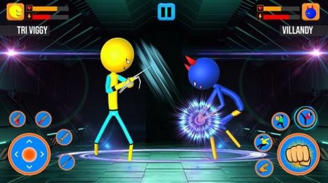 3、根据游戏提示进行操作,点击屏幕上的按钮来释放各种技能和招式,与其他火柴人进行格斗对决,获得胜利的同时享受格斗的乐趣。