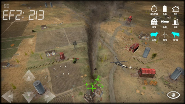 1、操作玩法十分的简单,玩家只需要通过几个虚拟按钮就可以来控制龙卷风进行移动。