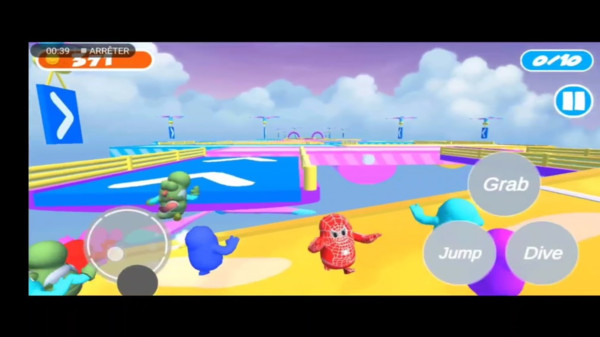果果淘汰赛一共可以容纳20多人一起进行比赛,在一道长长的跑道之中设计了许多的机关陷阱,玩家们需要依靠自己的智慧来进行化解,在进行挑战的时候,不仅需要小心那些陷阱的阻碍,还要防备对手的骚扰,你很有可能会被他们挤出跑道之外,那样你就会直接淘汰,快来下载游戏挑战一下吧。